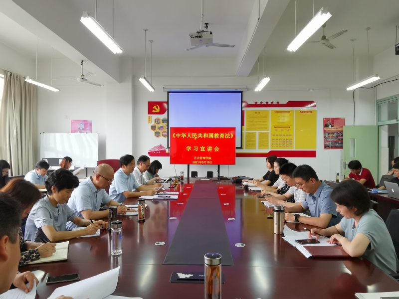 本网讯 为引导全院教职工充分认识教育法修订重大意义,切实做好贯彻实施,6月16日,公管学院组织开展《中华人民共和国教育法(2021修订)》学习宣讲会,院长丁仁船宣讲新修订的教育法,学院全体教职工参加。