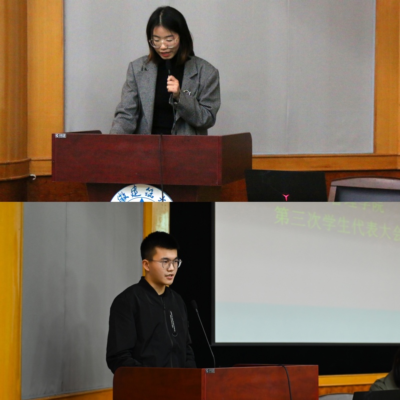 会议伊始,学院第二届学生会主席、团委副书记依次作述职报告。表达了第二届学生会全体学生对学院领导老师的由衷感谢,回顾了第二届学生干部们的工作成果、辛勤努力和真诚奉献,并总结了上一年度学生工作中的潜在问题与不足,期待学院第三届学生会能够在学院领导老师的指导与帮助下,取得新成绩,开创新局面。