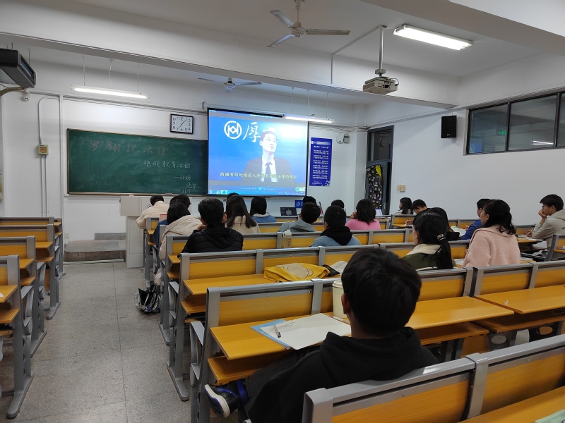 活动伊始,播放了一段罗翔老师谈法律学习的视频,展示了他对一些法律问题的独特见解。通过生动的语言和现实生活中的案例帮助同学们更加深入了解法律的内涵,积极启发了学生对法律相关问题的思考,引导学生对事实与法律的权衡做出合理的选择。提高了学生明辨是非能力的同时,也强化了学生的法制观念。