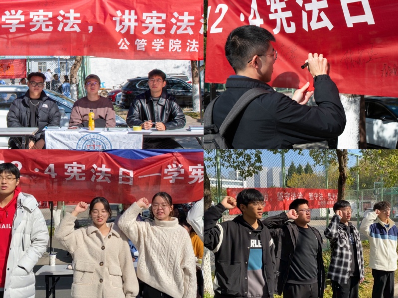 为发挥法学专业学科特色,增强法学专业学生奉献意识。公管学院法律协会在校园多处设置法律宣传咨询台,向全校师生发放精心制作的普法宣传资料,将相关政策和法律知识传送给全校师生并在现场解答学生的法律咨询,利用自身专业知识帮助学生解决发生在日常生活中的维权问题,提高学生维权意识。活动现场,学生们在宣传台前自发排起了长队,逐一在横幅上写下签名,法学学生在宣传活动结束后庄严进行宪法宣誓,立誓忠于宪法,忠于祖国,忠于人民。