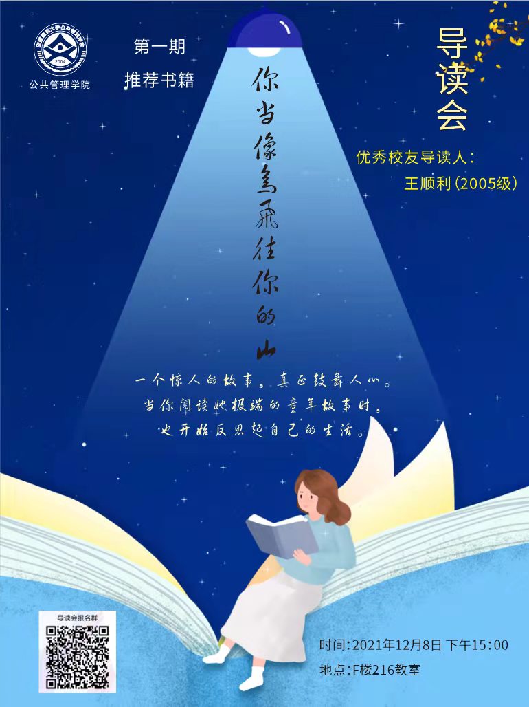 本网讯 为推进优良学风建设,引导学生培养阅读兴趣,公共管理学院持续开展学风建设系列活动,“师与书香 悦读畅享”导读会第一期于12月8日在F楼216教室展开。本期导读会邀请优秀校友王顺利为导读人,100多名学生踊跃报名,学院遴选了50名学生参加此次活动。