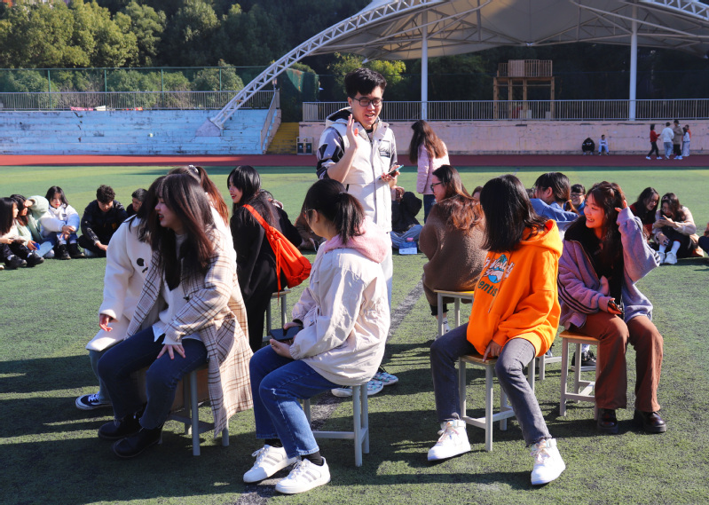 12月4日,公管学院在北区风雨操场举办“与心灵相约,与健康同行”心理团辅活动。此次团辅活动兼具娱乐性和益智性,以学生们喜闻乐见的娱乐方式——听歌识曲开始互动,歌曲层出不穷,学生们仿佛成为中华小曲库,欢乐的唱出熟悉的歌曲;在欢声笑语中,考验反应力与注意力的抢凳子比赛开始了,学生们聚精会神,随着音乐的节拍落座抢凳子,凳子的数量越来越少,但学生们的欢呼声和笑容越来越多;最后,全体同学共同深情演唱《我和我的祖国》,表达对祖国母亲的崇高敬意与爱国情怀,时刻提醒自己肩负的时代责任与历史使命,活动在优美的歌声中落下帷幕。