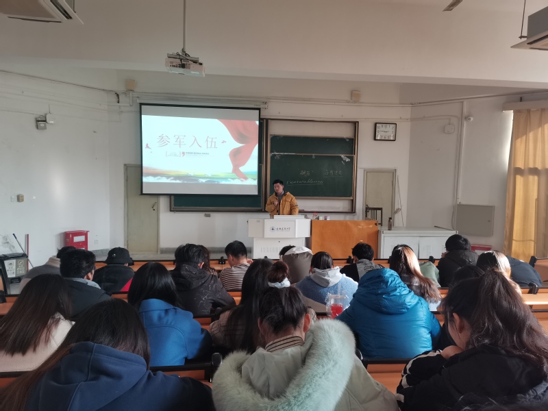 为确保2022年征兵宣传工作有序推进,营造浓厚的征兵入伍氛围,学院毕业班辅导员召开征兵宣传主题班会,深入解读大学生征兵宣传政策,强调在预征报名、体检、政审等环节中的注意事项,并对大学生入伍享有的优先考学提拔、学费或助学贷款补偿代偿、退役复学就业等优抚政策作了具体介绍,对学生提出关于入伍体检、政审、定兵等方面问题做了详细解答。辅导员们鼓励同学们要以梦为马,不负韶华,投身军旅,绽放青春,充分展示当代大学生的远大抱负和家国情怀,为实现中华民族强军梦而不懈努力奋斗。