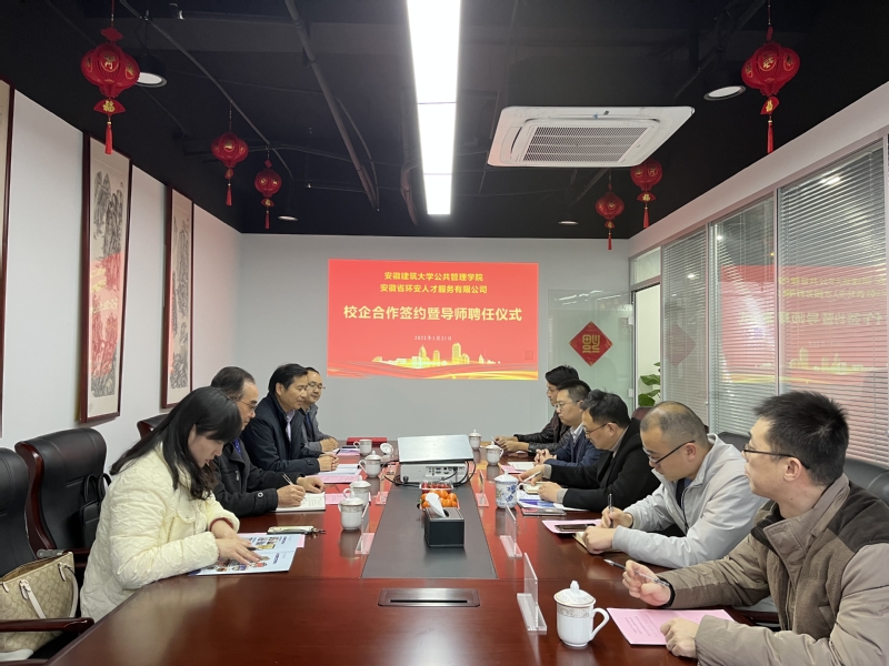 校党委常委、统战部长,公管学院院长丁仁船介绍了安徽建筑大学及公管学院近年来在学科建设、人才培养、科学研究、社会服务等方面取得的成绩,分享了学院十多年来在实习就业基地建设、产学合作协同育人、企业案例共同编写、校企专家互聘交流等方面的成功经验,希望通过与环安人才公司深度合作、优势互补,进一步拓展校企合作空间、缩小人才供需差异、提高社会服务效能,共同为长三角区域经济与社会发展做出更多更大贡献。