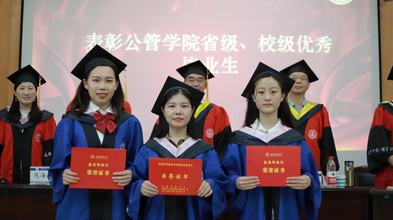 本网讯 2022年6月8日,公共管理学院2022届研究生毕业典礼暨学位授予仪式在安徽建筑大学北校区F楼三楼报告厅隆重举行。公管学院领导班子、硕士生导师出席仪式,2022届毕业生、非毕业班学生代表参加仪式,典礼由学院党委副书记马晓艳主持。