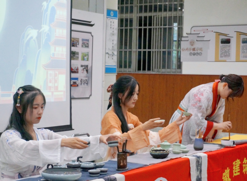 朝含国学社与小隐茶艺社联合举办传统文化演出,包含书法、茶艺表演和诗歌朗诵三个环节,表演中穿插飞花令游戏,主持人与现场新生精彩互动。此次社团活动以发扬中华文化为契机,力求丰厚学生文化底蕴,进一步坚定青年学生的文化自信。
