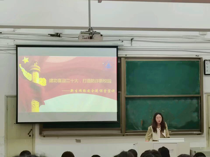 本网讯 为进一步加强网络安全教育宣传,切实增强学生网络安全意识,近日,公共管理学院开展防范电信诈骗宣讲活动,为响应学校疫情防控要求,分专业分批次举办共5场讲座,覆盖2022级全体新生。
