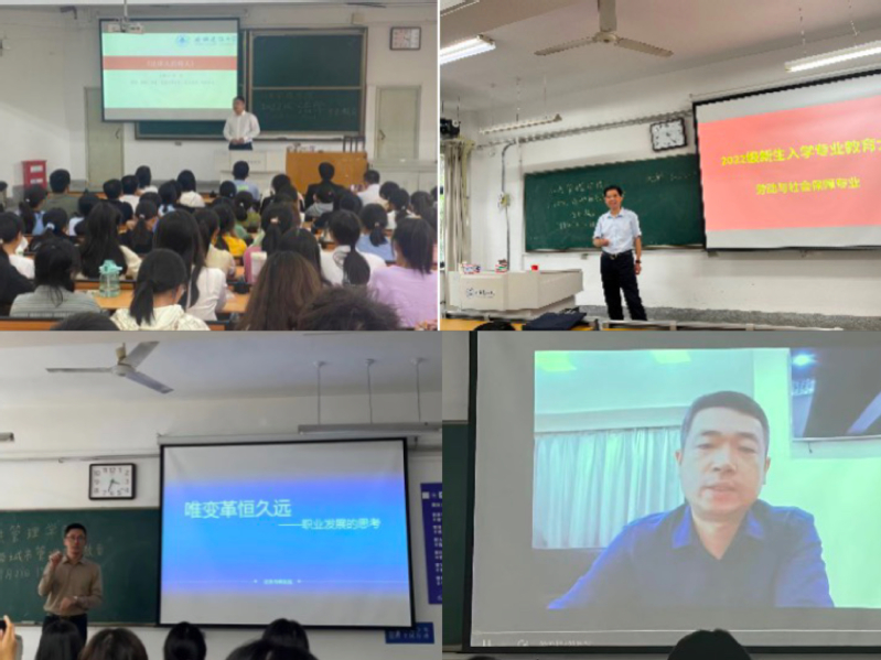 法学专业邀请上海君悦(合肥)律师事务所主任罗平以“法律人的明天”为主题,强调“实践出真知”的硬道理和提升综合素质的重要性。劳动与社会保障专业邀请安徽省人力资源和社会保障厅工伤保险处处长祖朝光以“社会保险——服务人的一生”为主题,围绕社会保障事业的演化进程、国家战略地位、社保人的职业层次和情怀担当等悉心讲述。城市管理专业邀请安徽国华工程科技(集团)有限责任公司副总经理郁磊以“唯变革恒久远”为主题,从城市管理深意、唯变革恒久远、未来职业需求、能力培养建议等详细解读。