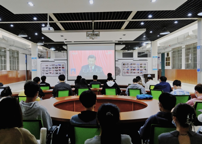 本网讯 举世瞩目的中国共产党第二十次全国代表大会于10月16日上午10点在北京胜利开幕。公共管理学院组织学生在图书馆报告厅、F楼社团活动中心、研究生工作室、宿舍等区域观看二十大开幕会直播,彰显公管学子关心国家大事、与祖国同频共振的良好政治风貌。