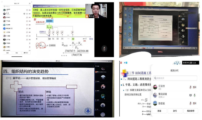 线上督导发现,学院大多数教师备课认真充分、线上授课手段熟练,重组课程内容适应教学媒介改变,以直播授课方式为主导、以录播答疑方式为补充,师生互动频繁多样、学生参与热情较高,各类课程正常开展,取得较为理想的效果,但网络延迟、系统故障等问题也影响到少部分课程进展。同时,学生督导组也反馈多数同学能够快速适应教学模式变化,能够以积极心态认真参与线上课堂学习,也存在个别同学不认真学习现象,均及时反馈给班级辅导员加强管理。