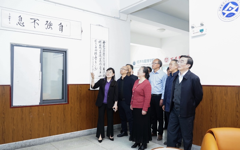 本网讯 3月8日,安徽省妇女联合会党组书记、主席刘苹、一级巡视员龚明珠、安徽省人力资源和社会保障厅一级巡视员刘少华一行莅临公共管理学院参观走访,校党委书记孙道胜,校党委常委、副校长闵杰热情接待,就业工作处、外国语学院、土木工程学院、公共管理学院相关人员陪同参观。