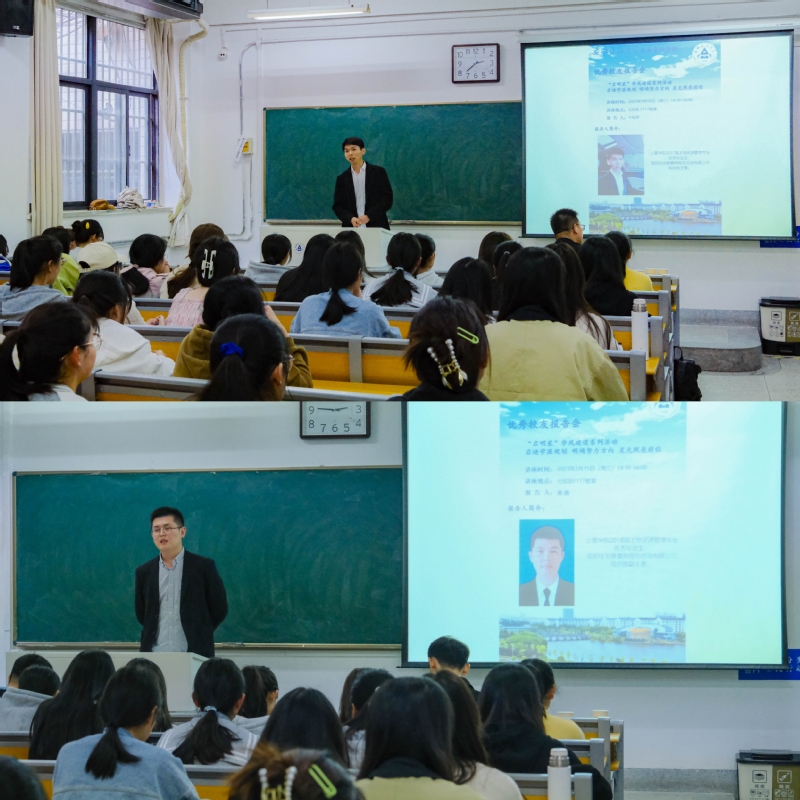 本网讯 为帮助新生增强专业认同感,进一步明确奋斗目标,合理规划大学生活,3月15日,公管学院举办“启明星”学风建设——优秀校友交流会活动。学院邀请优秀校友卞裕波、黄磊担任主讲,学院辅导员代表,2022级土地资源管理专业、城市管理专业全体学生参加。