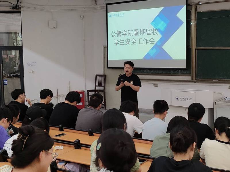 本网讯 为进一步落实学校关于暑期留校学生的工作要求,切实保障留校学生学习生活安全有序,7月11日,公管学院在F118教室召开暑期留校学生安全教育主题大会,会议由公管学院党委副书记江侠主持,20级辅导员、全体留校学生参会。