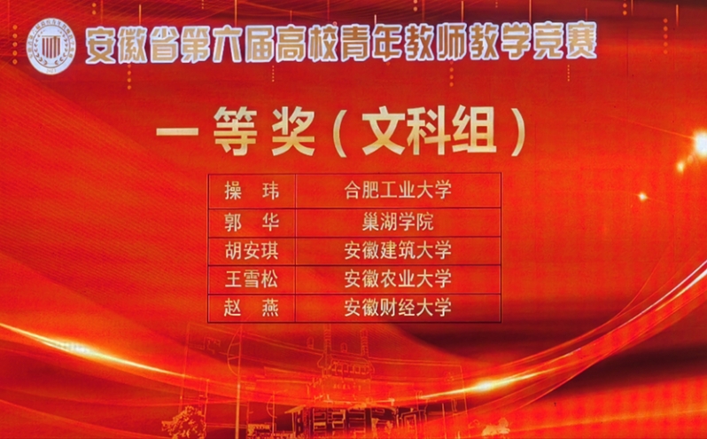 本网讯8月18日,安徽省第六届高校青年教师教学竞赛决赛圆满落幕,来自全省49所高校的195名青年教师代表参加比赛。经过激烈角逐,公管学院胡安琪老师荣获文科组一等奖。