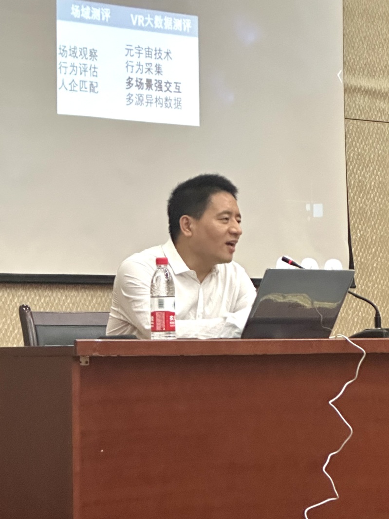 随后,刘佰明向同学们介绍了采用元宇宙VR技术进行大数据人才测评的全新方法,分享了许多相关企业和高校使用该技术的成功案例和应用场景。通过与传统人才测评方式对比,基于元宇宙VR的大数据人才测评能够更真实地还原候选人在工作场景中的表现,提供更准确、全面的人才评估数据,从而提高企业人才选拔的准确性和效率,“测-评-培”人才培养新模式培养的优势导向复合型人才有助于提高组织绩效。