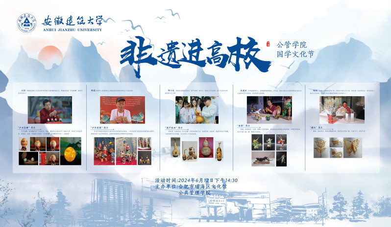 本网讯 领略名家风采,品味非遗魅力。为深入学习贯彻习近平总书记关于弘扬中华优秀传统文化的重要论述,营造传承国学经典、弘扬非遗文化的校园氛围,6月12日,由合肥市瑶海区文化馆和公管学院联合主办的“非遗进高校”活动走进安徽建筑大学金寨路校区,一个个独特的“非遗”项目、一件件精美的非遗作品,为师生带来了一场文化艺术盛宴。金寨路校区师生和国际教育学院部分留学生代表参加了本次活动。