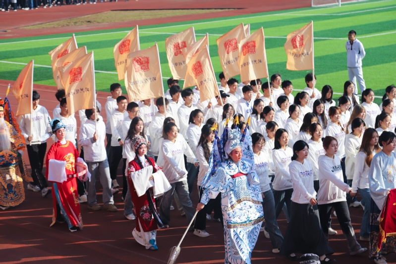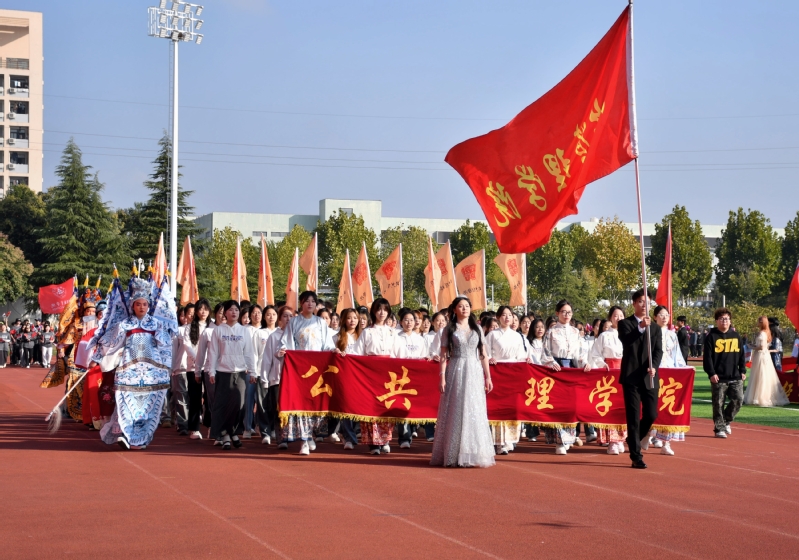 开幕式上,学院代表方阵迈着整齐有力的步伐走过主席台。方阵中,同学们身穿统一的服装,手中的国旗迎风飘扬,口号响彻云霄,展现出了公管学院团结向上的精神面貌;方阵旁,4名戏曲扮相的演员,他们神采奕奕,展现出了公管学子对中华传统戏曲文化的热爱与传承。