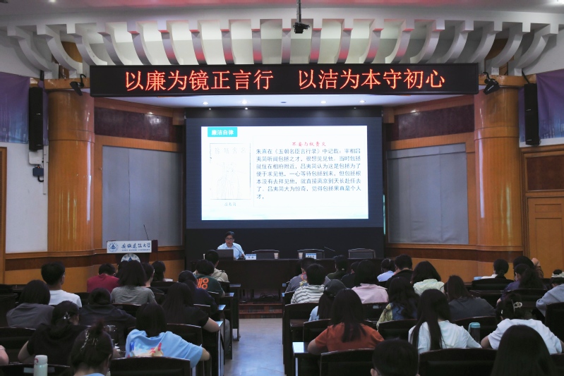 金寨路校区建树楼三楼报告厅内,一场关于廉洁文化的思想盛宴精彩开讲。合肥市社科联副主席、中共合肥市委讲师团副团长贾猛应邀担任主讲,从历史渊源追溯包公清廉文化的发展脉络,结合现实案例剖析廉洁文化的时代内涵与重要价值。从“胸中有大义”到“心中有人民”,从“锤炼好作风”到“展现新作为”,专家深入浅出的讲解,让同学们深刻认识到廉洁自律的重要意义。互动环节中,同学们积极提问,就如何在多元社会思潮中坚守廉洁初心、如何将廉洁理念转化为实际行动等问题与专家进行了深入交流。讲座在热烈的掌声中结束,同学们纷纷表示,这不仅是一次知识的学习,更是一次心灵的净化,今后将把廉洁意识内化于心、外化于行,做崇廉尚洁的践行者。