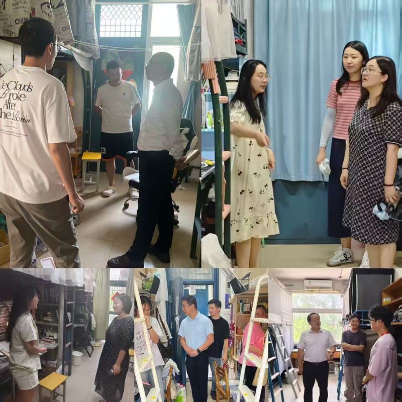 活动中,学院领导逐间走访学生宿舍,与学生亲切交流,了解毕业生就业情况、离校安排、未来打算等,叮嘱学生注意人身财产安全,并就如何尽快适应新的学习工作环境给毕业生提出意见和建议,希望每一位毕业生都能在人生新阶段获得更好的成长和发展。在关注毕业生个人成长发展的同时,学院领导和专兼职辅导员还集中对学生宿舍的安全隐患进行了全面排查,从电器插座规范使用到防诈骗宣传海报张贴,从消防设施完好到寝室卫生状况,每一个细节都体现着对学生的深切关怀。