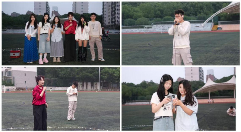6月12日晚,金寨路校区的操场草坪在暮色中化作音乐舞台,多元艺术元素在此交织碰撞。现场既有明快节奏的现场演绎,也有灵动旋律的即兴创作。表演者用音符勾勒校园记忆的轮廓,从课堂的书声到操场的欢笑,从深夜的自习室到毕业前的走廊,都在旋律中化作温柔的注脚。观众围坐成圈,荧光点点随节奏轻晃,离别的氛围在共鸣中升华为对未来的期许。这场不期而遇的音乐聚会,既是青春故事的终章,亦是新征程的序篇。