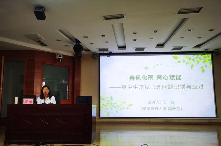 之后,郑敏围绕高中生心理健康主题,与在场教师进行了系统深入的交流。她着重阐述了学生心理健康的重要性、高中学生常见心理问题的识别与评估,以及如何积极赋能学生心理发展。讲座得到与会领导和教师的高度认可,大家表示对学生心理健康问题有了更全面、更深刻、更直观的认知。