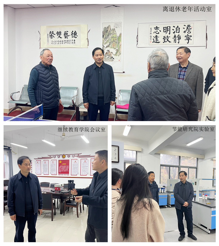 会后,调研组还实地走访了离退休处、继续教育学院和节能研究院。在离退休活动室,黄多能与离退休老同志亲切交谈,询问他们的生活状况、健康情况及实际需求,对老同志始终关心支持学校发展的情怀表示衷心感谢。在继续教育学院会议室,黄多能重点听取了继续教育在招生录取、培训项目、经费使用管理等问题的汇报,要求把严的作风贯穿招生、教学、管理等各环节。在节能研究院实验室,黄多能对节能院在节能低碳领域取得的科研成果及青年博士团队展现出的钻研精神给予充分肯定,他鼓励青年博士们要坚守科研初心,敢于攻坚克难,在科研道路上追求卓越、精益求精,同时更要恪守学术诚信,自觉维护风清气正的科研生态,以严谨的治学态度和务实的科研作风,产出高质量、有价值的科研成果。(作者:姚婷婷;一审:周娅子;二审:江侠;三审:汤娜)