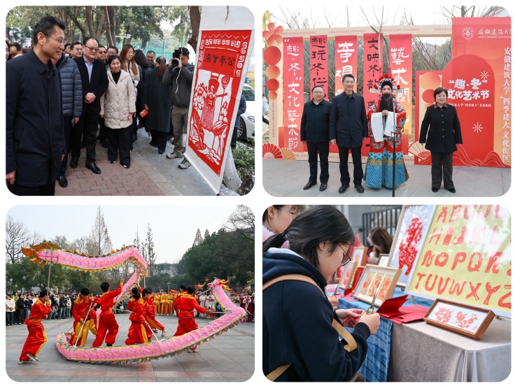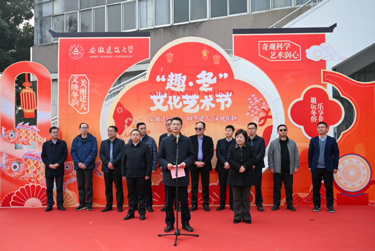 本网讯 冬日建大,文化传承与育人活力交相辉映。12月17日,安徽建筑大学“四季建大”文化街区“趣·冬”文化艺术节顺利开幕。校党委书记马文革、校党委副书记李早、校党委常委、副校长高跃峰莅临现场指导,相关职能部门负责人和师生代表齐聚一堂,共同为这场“以文化人、赋能成长”的校园文化盛宴启幕。本次活动由校党委宣传部、本科生院、校团委主办,公共管理学院承办。