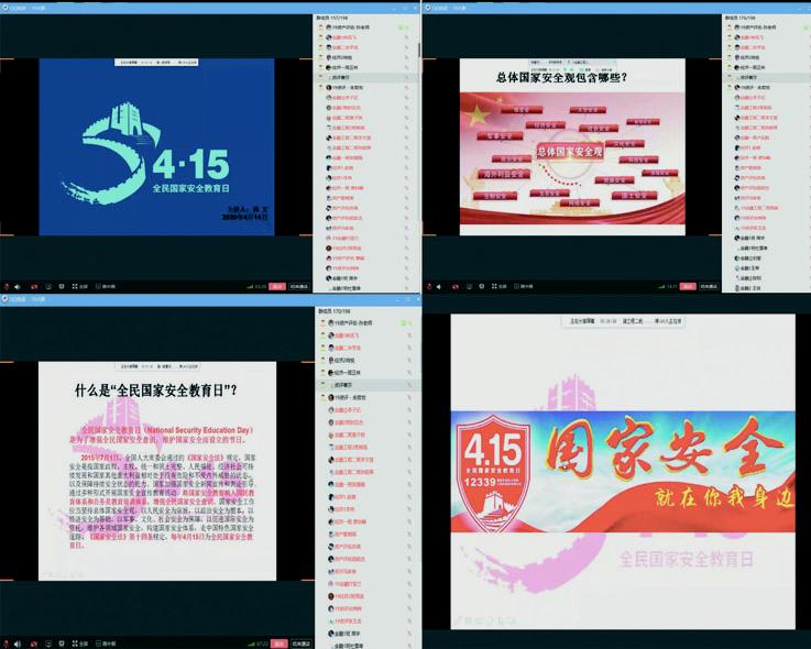 本网讯 “居安而念危,则终不危;操治而虑乱,则终不乱。”国家安全不仅关乎国家的兴亡,还关乎每个公民的切身利益。在第五个全民国家安全教育日到来之际,经管学院开展线上主题班会,不同专业不同年级的同学在辅导员老师的带领下共同学习国家安全相关知识。
