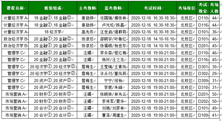 经管学院2020-2021-1第15周考试安排