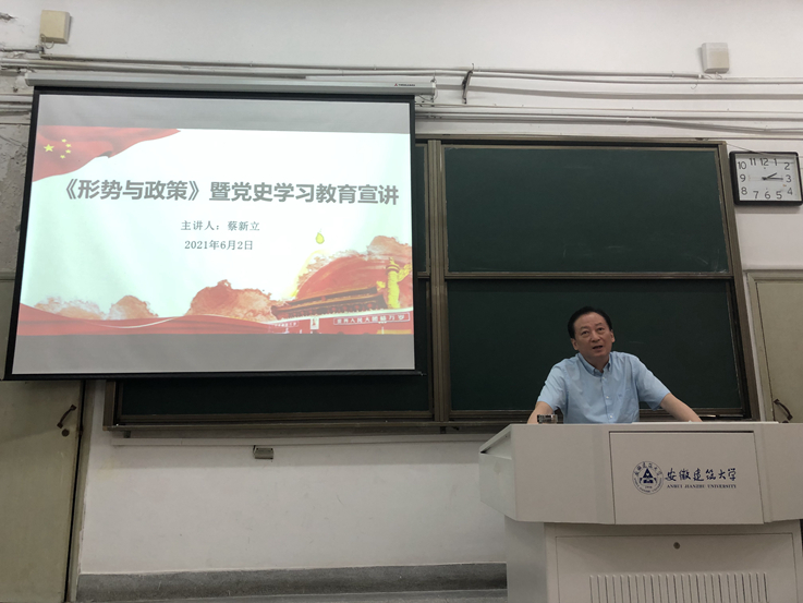 本网讯 6月2日,校党委常委、副校长蔡新立深入经管学院,为学院第48期入党积极分子培训班学员作形势与政策暨党史学习教育专题宣讲报告。180余名培训班学员和部分党员教师代表聆听了报告。