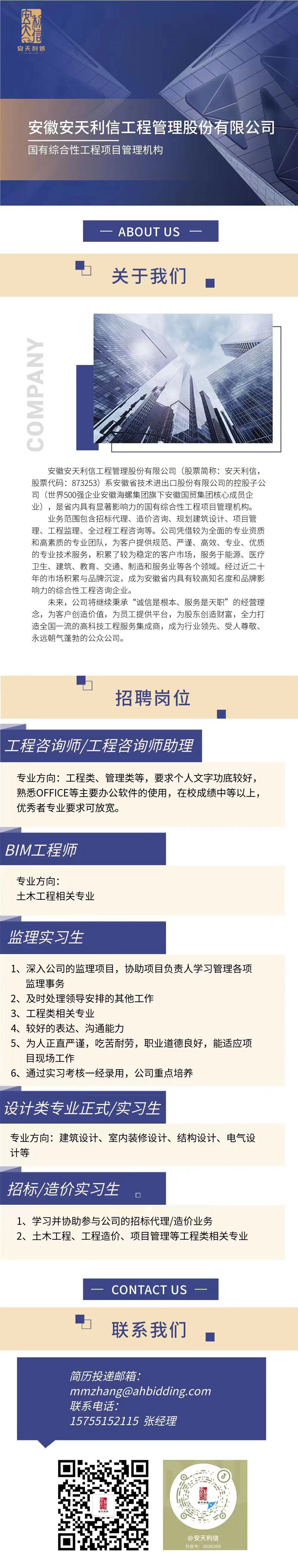 【2022就业信息】安徽安天利信工程管理股份有限公司招聘简章