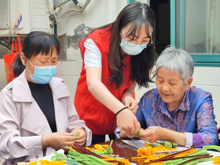 在社区居民活动中心,同学们身着志愿者服装,帮忙搬桌椅,耐心教老人做手工,亲切交谈,拉近了与老人的距离。通过交流深入了解老人对社区养老服务设施需求、社区养老服务存在的问题及改进建议。整个活动过程,氛围轻松愉快,受到老人们的高度赞赏。