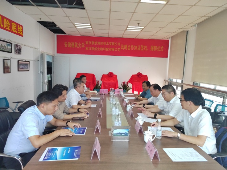 本网讯 7月13日,校党委常委、副校长蔡新立率队赴南京惠然测控技术有限公司、南京惠然生物科技有限公司开展校企合作交流暨“访企拓岗促就业”专项行动。南京惠然测控技术公司董事长张赣、总经理尚华、南京惠然生物科技公司总经理萧卓颖等公司高管,学校科学技术处(产学研合作办公室)、科技成果转化处、环境与能源工程学院、经济与管理学院等部门负责人参加相关活动。