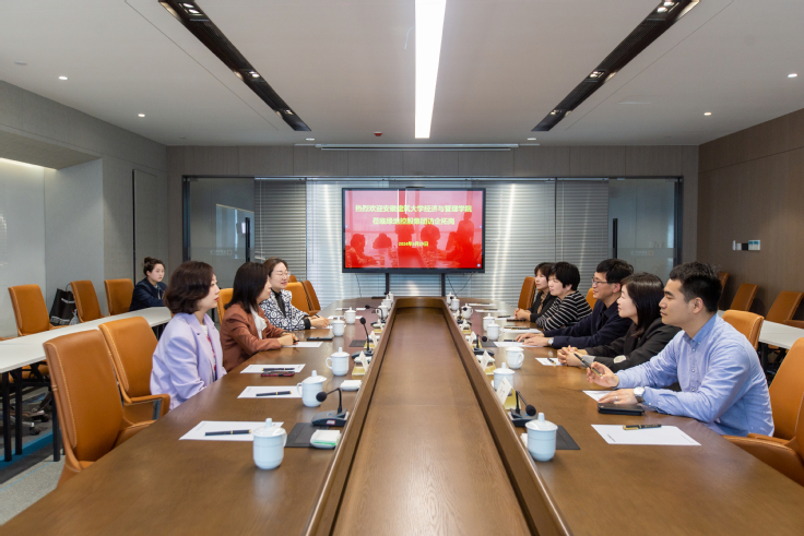 在校友吴芳的热情接待下,经管学院一行参观了公司的办公环境,深入了解了绿地控股集团合肥区域公司的发展历程、主营业务以及未来发展规划。绿地控股集团作为国内知名的综合性企业,在房地产、金融、商业运营等多个领域取得了显著成绩,其业务发展与经管学院开设的专业方向高度契合,为毕业生提供了广阔的就业空间。