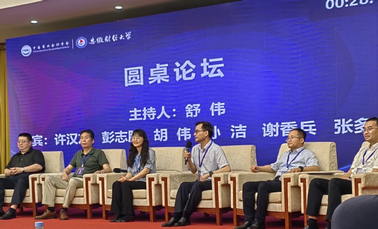 在下午的大会圆桌论坛环节,彭志胜以工科思维、德育为先、特色培养、数字化转型、产教融合等作为关键词,详细分享了学院的会计人才培养经验。