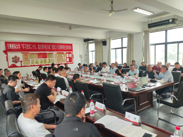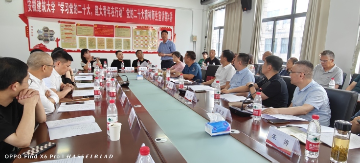 本网讯 为深入学习贯彻中国共产党第二十届中央委员会第三次全体会议精神,凝聚共识、汇聚力量。8月17日,民建省直安徽建筑大学支部联合民建省直企业家六支部、民建省直综合一支部、民建黄山市黄山区支部及民建蚌埠市禹会区企业支部在金寨路校区成功举办了“学习贯彻中共二十届三中全会精神”学习研讨活动。民建安徽省委组织部部长谢强、安徽建筑大学党委统战部常务副部长、长三角区域高等教育一体化示范区共建办公室主任朱涛、经济与管理学院党委书记陈国中、40多位民建会员参加会议。会议由学校民建支部主委朱庆生和民建省直企业家六支部主委王伟新共同主持。
