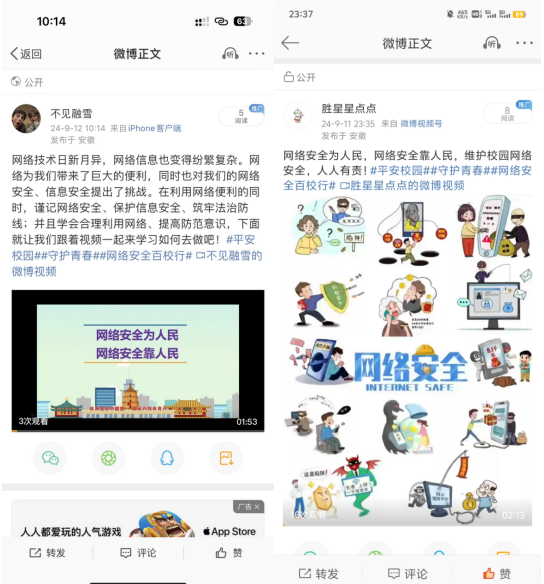 9月6日以来,学院依托国家网络安全宣传周活动,组织学生集中观看“公安部刑侦局”、“国家反诈中心”开展的“开学反诈第一课”网络直播,让同学们对各种新型诈骗形式有了更清晰的认识;大家集中观看中国大学生在线推出的“千万师生同上一堂网络安全教育课”,公安干警、网络安全专家、师生代表通过精彩的讲解,指导大家更好的防范电信诈骗、保护个人信息、规范网络行为;“守护青春 网络有你”全国大学生网络安全知识答题活动在吸引同学们踊跃答题的同时,普及防范网络诈骗、安全使用网络等知识;学院还组织学生参加“2024网络安全百校行”活动,不断营造安全上网、依法上网的良好校园氛围。