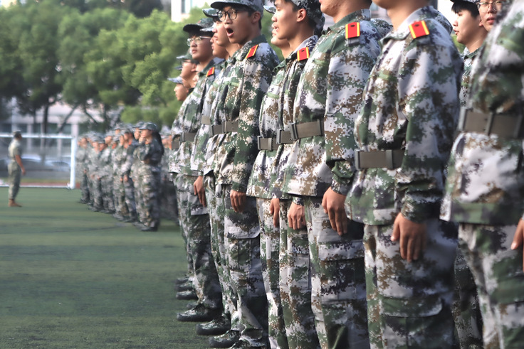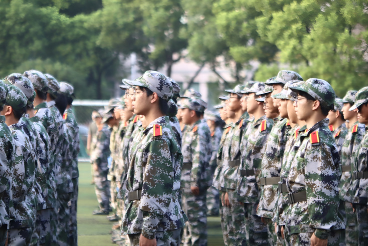 绿茵场上的军训队伍如同一幅幅流动的画卷,在阳光下闪耀着青春的光芒。稍息、立正、齐步走,队列整齐划一,每一步都踏出了青春的韵律。口号声此起彼伏,响彻云霄,充满了力量和决心,如青春的号角般,催人奋进。秋风轻拂,带来丝丝凉意,却无法吹散训练场上弥漫的火热气息。