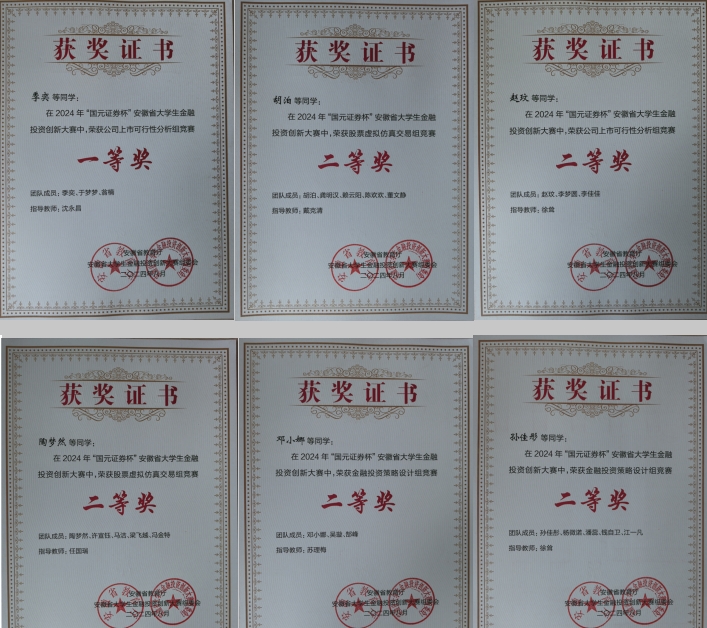 经管学子在2024年安徽省大学生金融投资创新大赛中再获佳绩