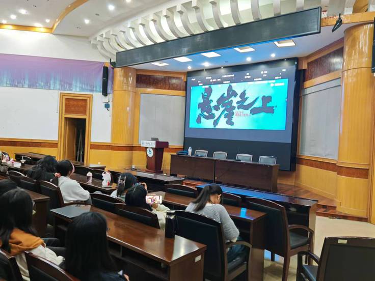 本网讯 为更好加强思想政治教育,培养学生爱国情怀。11月8日,安徽省“光影庆华诞”优秀影片进高校主题展映展播走进经管学院,为学生们带来了一场视觉与精神的双重盛宴。本次活动在建树楼3楼报告厅举行,120余名同学参与了观影。