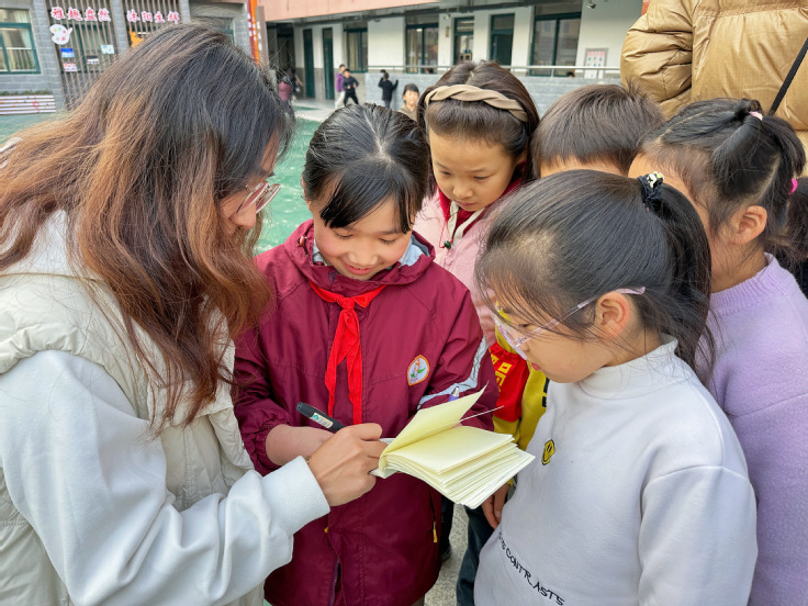 在信件交流的环节中,大学生与小学生围绕“阅读的奇妙世界”“书籍中的好朋友”“阅读的秘密花园”“我和书籍的小故事”“阅读,让梦想飞翔”等主题,认真书写并倾诉心声。小学生们的求知欲与好奇心如初升的“朝阳”,大学生们则如“灯塔”,引导着他们走向知识的广阔天地。通过提问与解答,双方在互动中激荡起智慧的火花,点燃了彼此的学习热情。