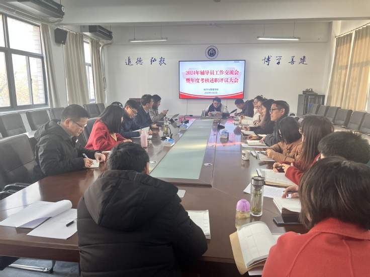 本网讯 为切实加强学院辅导员队伍建设,促进经验交流与团队协作,进一步提升学生工作质量,1月2日,经管学院在建树楼404会议室召开2024年辅导员工作交流暨年度考核述职评议大会。学院领导班子成员以及全体专兼职辅导员参加会议,会议由学院党委副书记帅英主持。