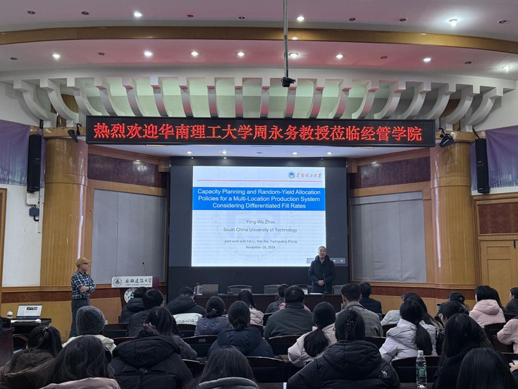 本网讯 1月4日,华南理工大学周永务教授应邀到经管学院举办“Capacity Planning and Random-Yield Allocation Policies for a Multi-Location Production System Considering