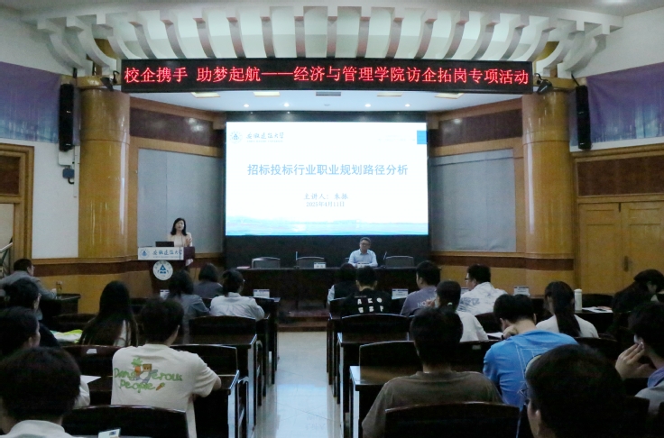 本网讯 4月11日,经管学院诚邀安徽省招标采购协会携8家优质企业来院举办“校企携手助梦启航”访企拓岗专项活动,通过职业规划主题宣讲、校企合作交流研讨、校园专场招聘会等多元形式,搭建高校、行业、企业三方育人平台,促进2025届经管类毕业生高质量充分就业。