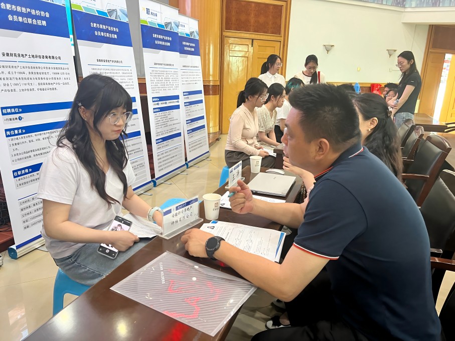 宣讲会上,安徽国华房地产土地评估有限公司负责人向与会毕业生分享了估价行业的就业前景,帮助同学们了解行业现状与就业市场形势,有效增强学生的职业意识与职业素养。随后,各会员企业通过PPT 演示与宣传视频,分别向学生介绍了企业发展历程、文化背景、未来方向及岗位需求等内容。同时,与现场学生展开互动,针对大家关心的薪资待遇、入职培训、晋升空间等问题进行详细解答。
