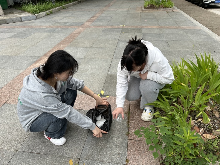 挑战赛结束后,活动进入“劳动实践”环节。在负责人的带领下,同学们分组前往校园各处,开展垃圾捡拾与分类实践。大家深入草坪、道路、建筑物周边等区域,仔细清理各类垃圾,并严格按照垃圾分类标准,对收集到的废弃物进行细致分类整理,规范投放到对应垃圾桶中。这一实践过程,不仅让同学们将所学的垃圾分类知识转化为实际行动,更进一步增强了环保意识,在劳动中践行绿色发展理念。