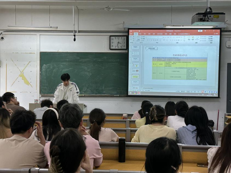 本网讯 为充分发挥优秀学子的榜样引领作用,帮助考研学生明晰方向、制定高效备考策略。6月11日,经管学院在建树楼314教室举办了考研经验交流会,本次活动邀请了2名2025届考研上岸优秀学生代表作经验分享,近60名备考学生参加。