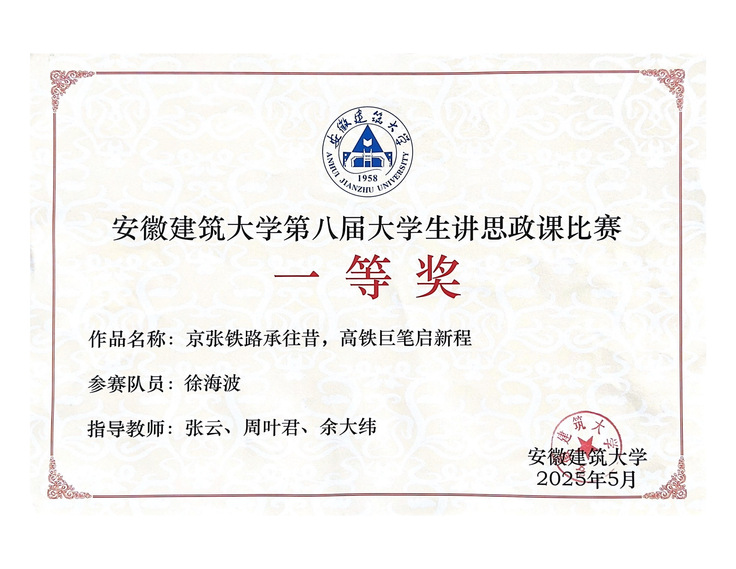 面对新时代的新要求,学院不断创新思政教育的方式方法,通过“菁琯”青年宣讲团平台深入挖掘社会主义先进文化的时代价值。将社会主义先进文化融入思政课堂,采用案例分析、互动讨论、社会实践等多种形式,让青年学子在参与中感受社会主义先进文化的魅力,理解其背后的深刻内涵。在安徽建筑大学大学生讲思政课比赛中,宣讲团成员屡获佳绩,展现了其深厚的理论功底和出色的创新能力。其中,2023年魏婧妍、张青怡两位同学荣获一等奖,魏婧妍同学荣获皖中片区赛三等奖;2024年曾祥玮荣获二等奖,李家乐等同学荣获三等奖;2025年宁潇琦和徐海波两位同学均荣获一等奖。他们用同龄人的语言、切身的体验和青春的感悟,将复杂的理论转化为生动的案例,将抽象的概念转化为鲜活的实践,让思政课堂真正“活”起来、“动”起来、“潮”起来,引领了思政教育的潮流。