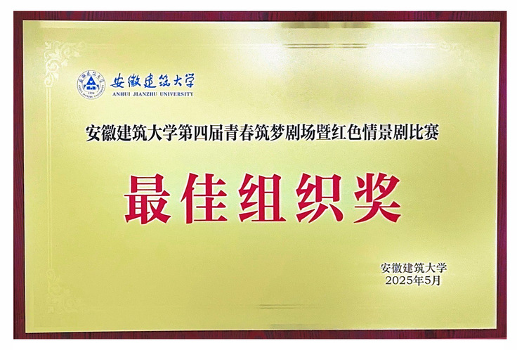 在安徽建筑大学第四届青春筑梦剧场暨红色情景剧比赛中,作品《星火燎原》荣获二等奖,学院荣获最佳组织奖。让革命先辈的理想信念与家国情怀在舞台上穿越时空,与当代青年进行了一场心灵的对话,使革命文化从抽象概念转化为可体验、可感知的精神洗礼,在学院范围内营造了浓厚的红色文化氛围,激发了青年学子的爱国情怀和使命担当。