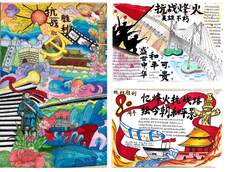 活动期间,同学们踊跃参与,一幅幅精美的手抄报作品既融入厚重的历史元素,又兼具灵动的艺术表现手法,以独特视角诠释抗战精神。这些作品通过艺术创作搭建起青年学子与历史沟通的桥梁,让红色基因在新时代绽放青春光彩。
